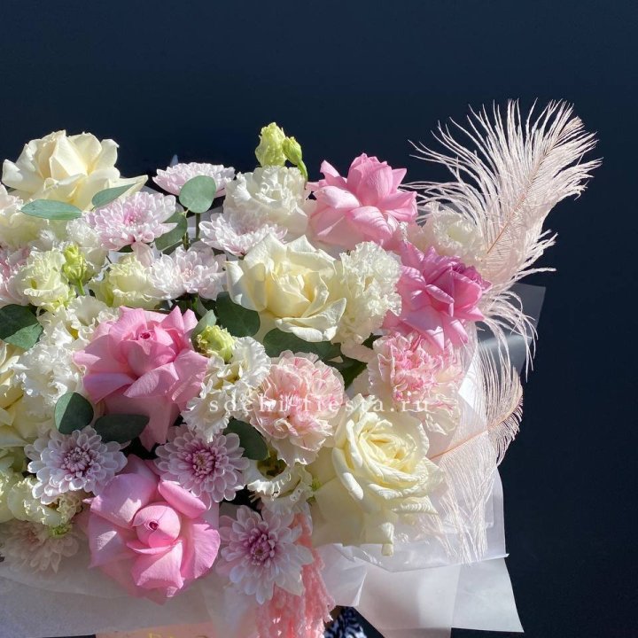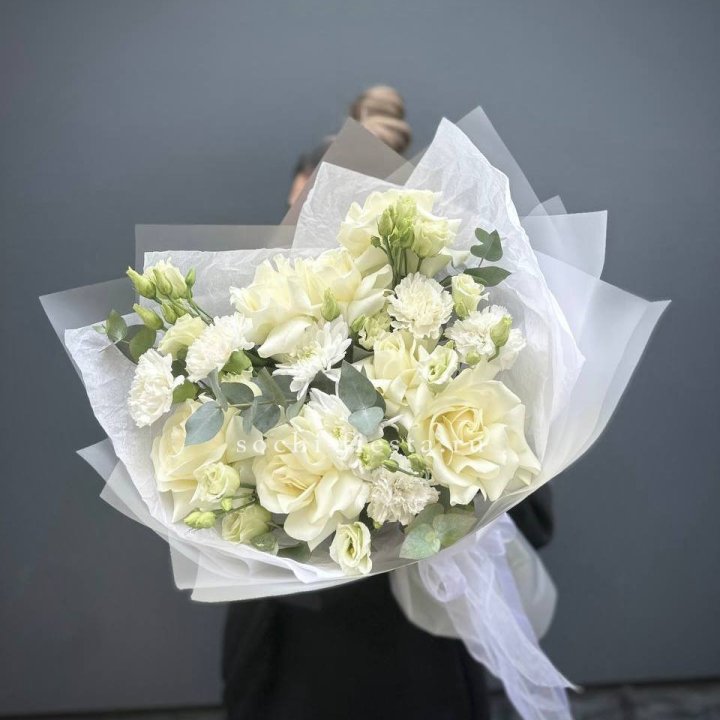 Букет хризантем и роз вайт шотс