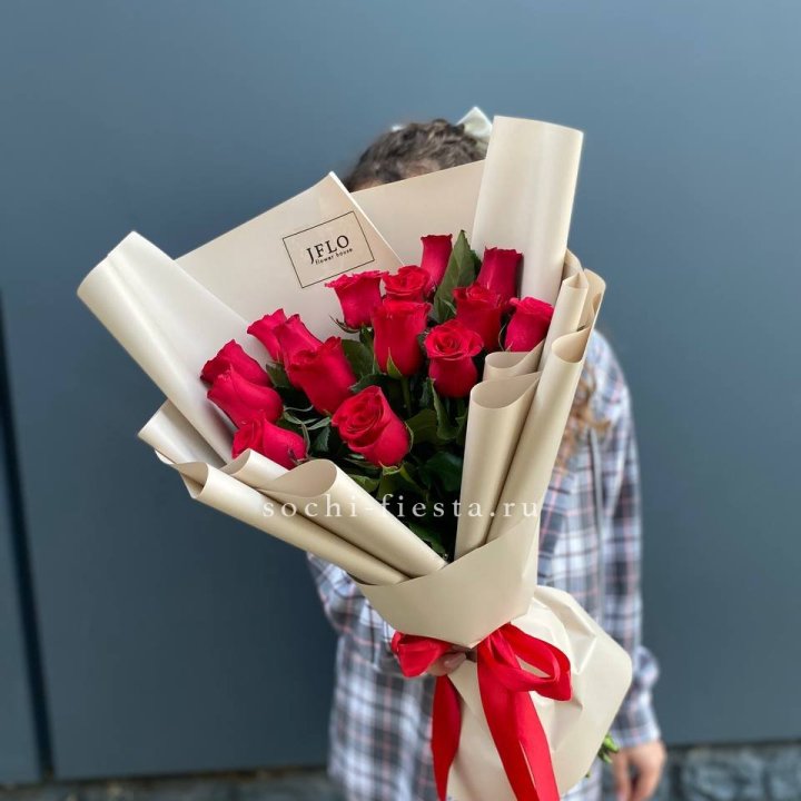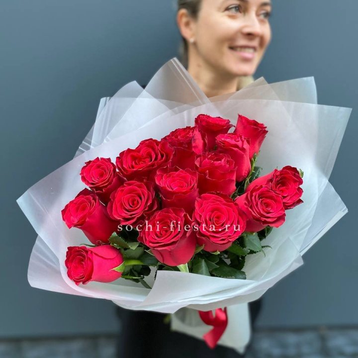 15 высоких красных роз
