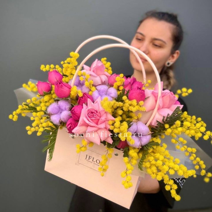 Французские Розы и мимоза в сумочке