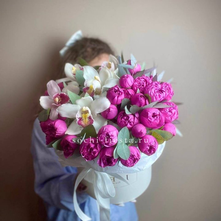 Дизайнерский цилиндр с пионами "Саманта"