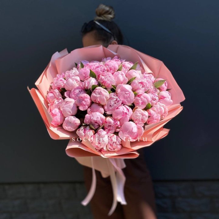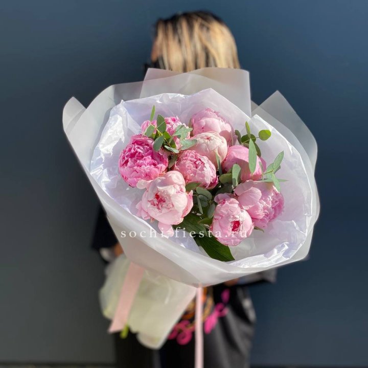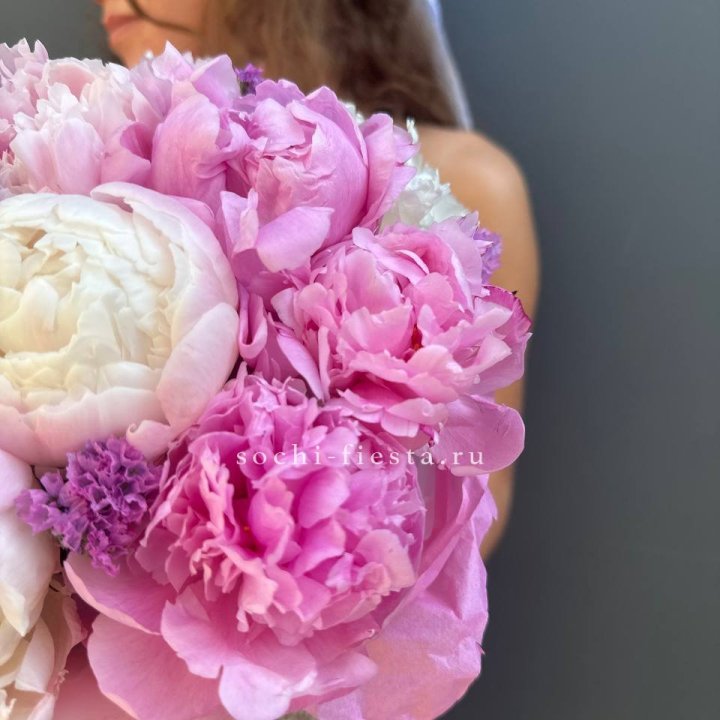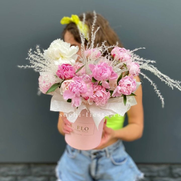 Цветочная корзина из пионов и пионовидных роз "Перфекте"