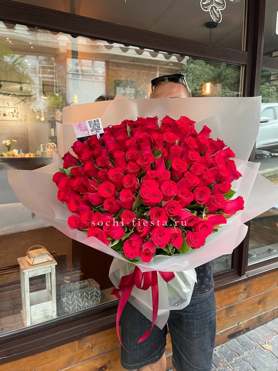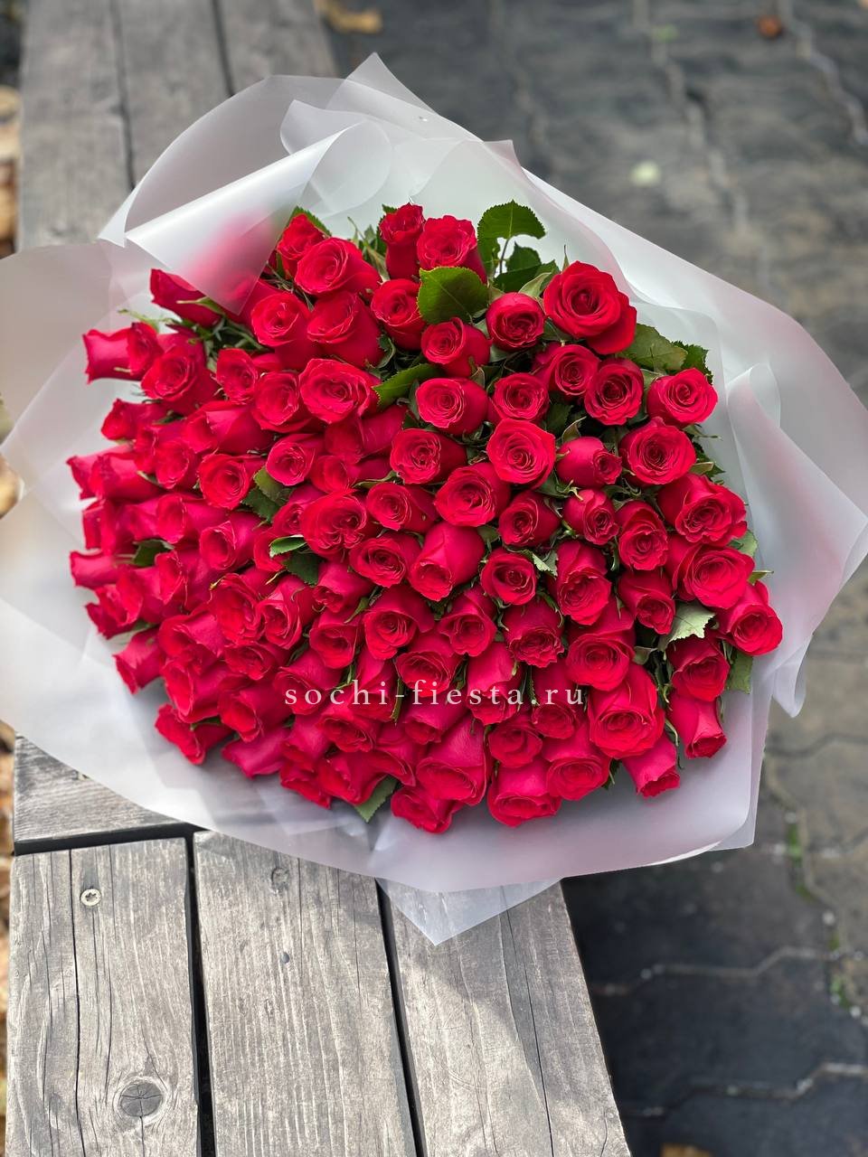 101 роза голландская, лента.