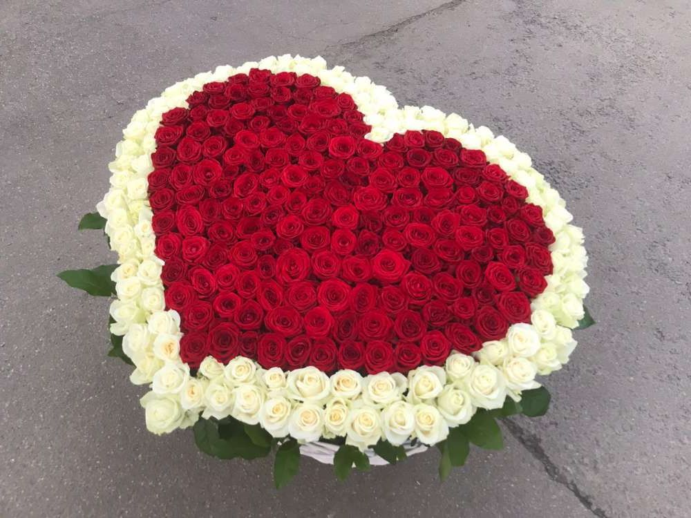 Двести одна роза глубокого красного оттенка собрана в просторной корзине. Плотное заполнение создает цельную бархатистую поверхность, где каждый бутон дополняет соседний. Масштабная композиция для выражения самых сильных чувств.