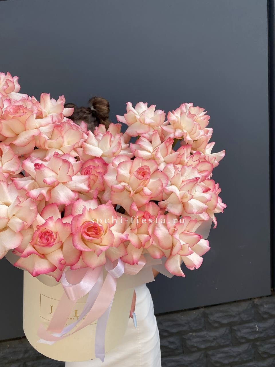 Для заказа товара "31 французская роза Джумилия в боксе" с доставкой в Новочеркасске нажмите в корзину