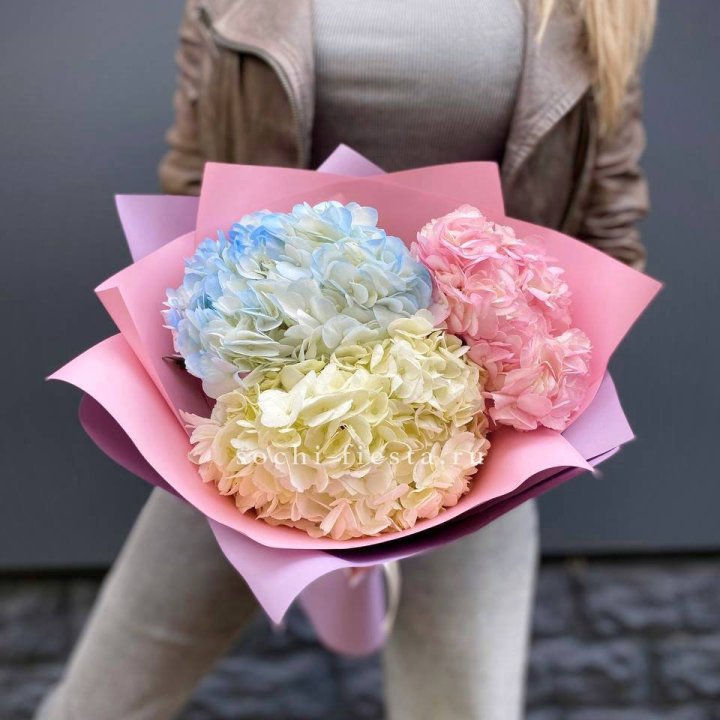 Гортензия — это декоративное кустарниковое растение, известное своими крупными, пышными соцветиями и богатой палитрой оттенков. Она широко используется во флористике благодаря своей эффектности и продолжительному цветению. Гортензия символизирует благодарность, искренность и гармонию. Ее крупные цветочные кисти делают ее популярным элементом композиций и букетов.