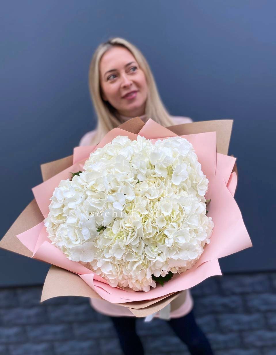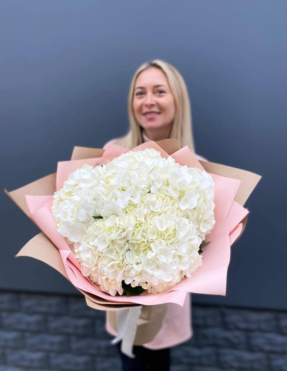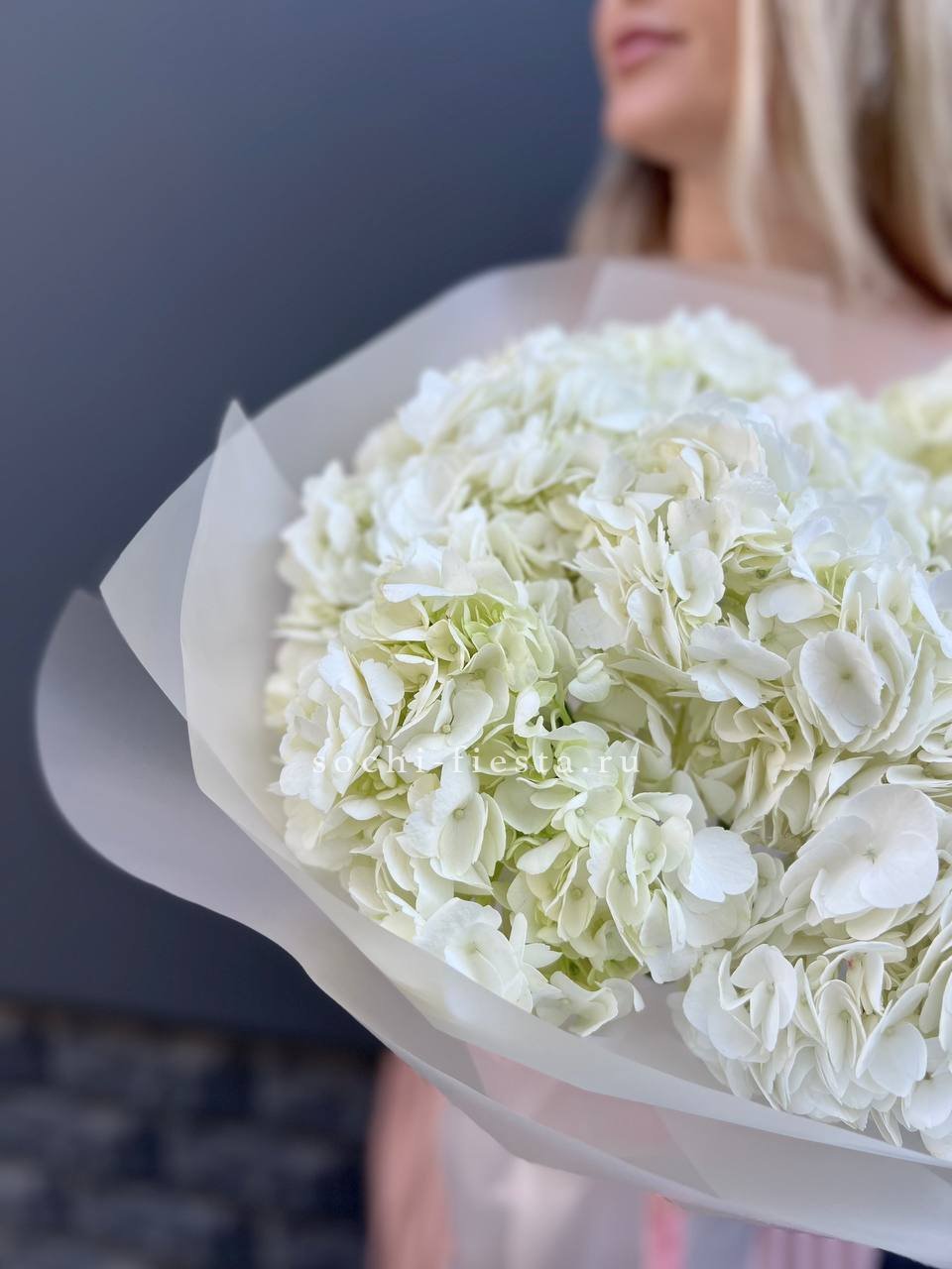 гортензия - 7 шт., лента, дизайнерская упаковка.