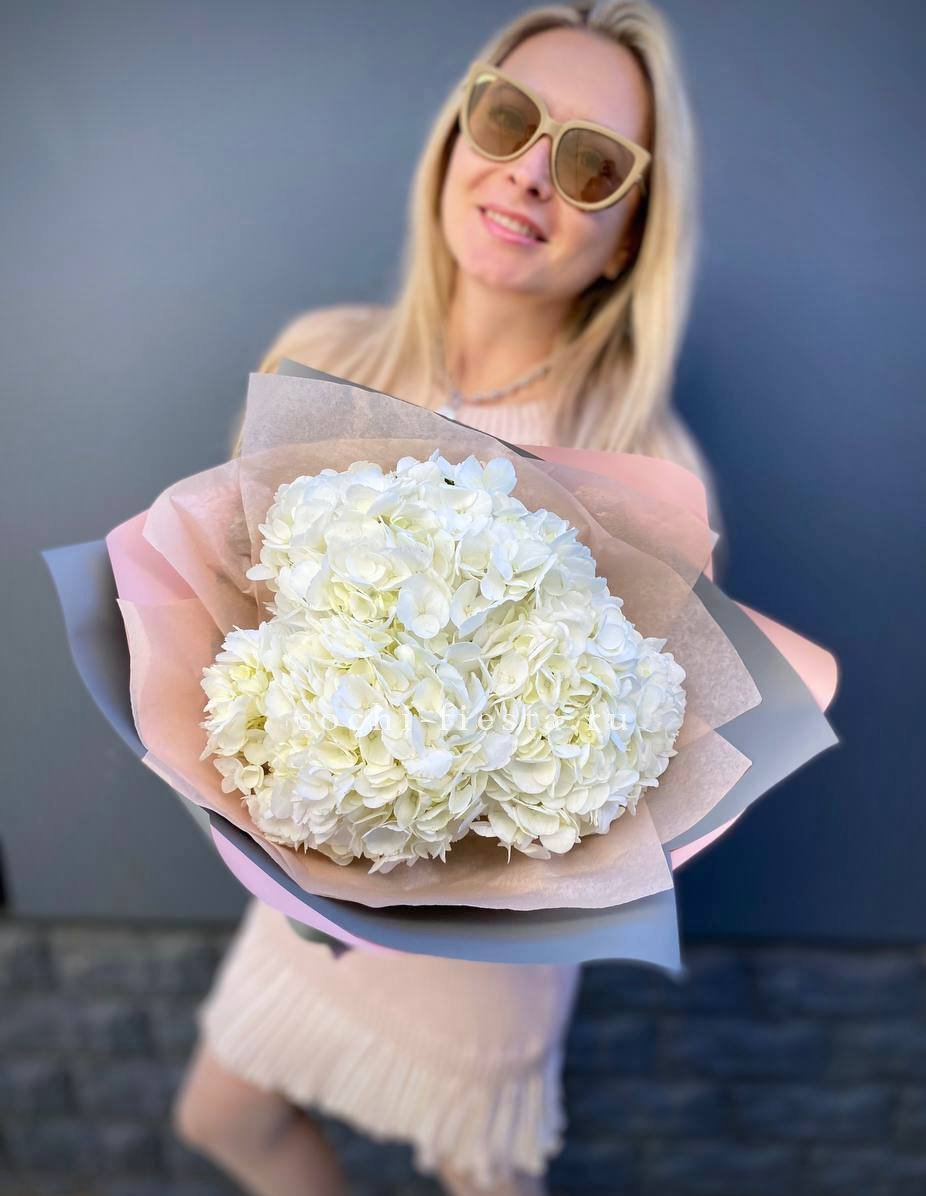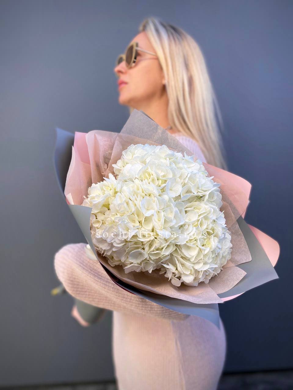 Для заказа товара "Букет из трёх белых гортензий" с доставкой в Новочеркасске нажмите в корзину