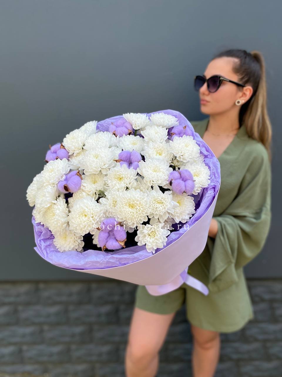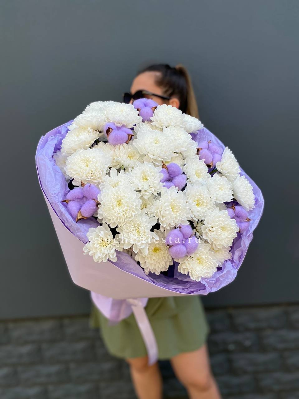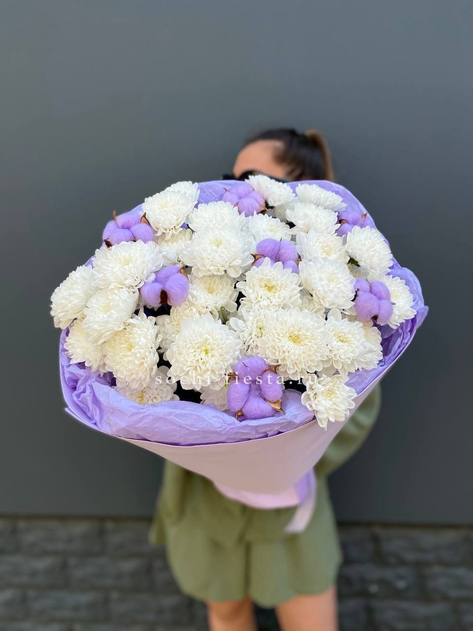 Для заказа товара " Букет хризантем и хлопка" с доставкой в Новочеркасске нажмите в корзину
