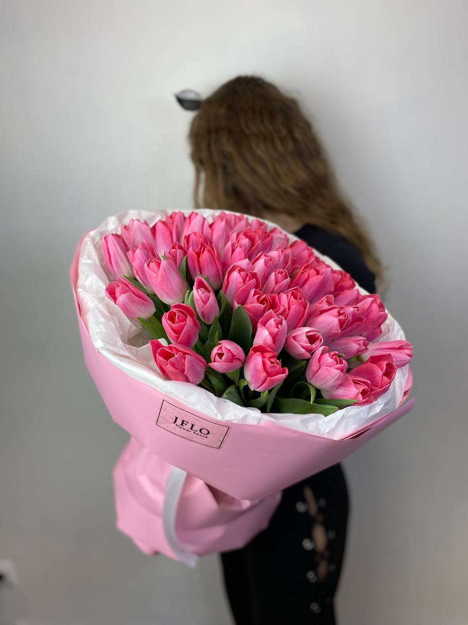 изначальная цена указана за букет из 15 тюльпанов Состав букета на фотографии: 35 тюльпанов, лента, упаковка.