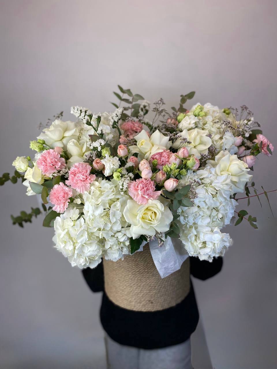 Гипсофилы с хлопком в шляпной коробке