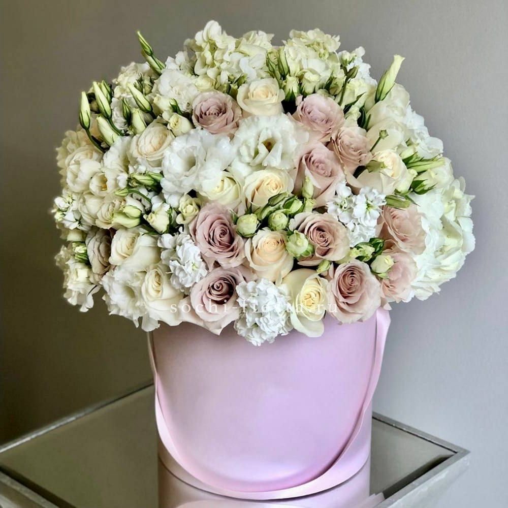 хризантемы, герберы, розы, антиринум, диантус, гортензия, бомбастик, озатамус в коробке или корзине на выбор.