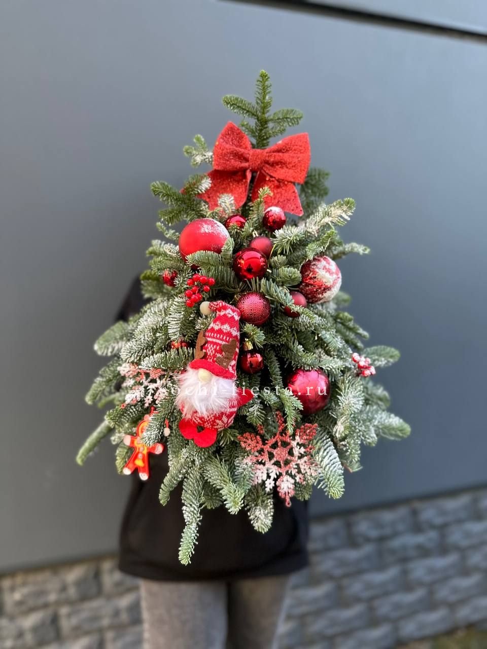 датский нобилис, аспарагус, кашпо, оазис, новогодние игрушки, декор ВНИМАНИЕ! Готовая композиция (декор) может иметь незначительные внешние отличия от примера на фотографии.