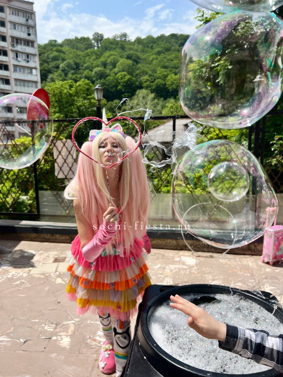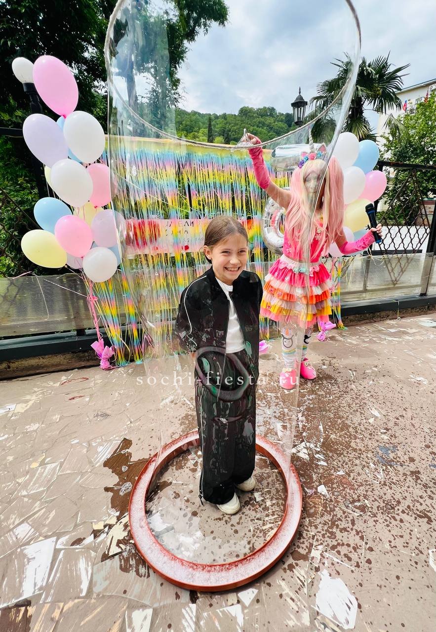 Шоу мыльных пузырей — яркое и захватывающее представление, в котором мастер создает огромные, разноцветные и необычные мыльные пузыри разного размера. В программе используются специальные техники и инструменты для формирования фантастических фигур, пузырей-гигантов и эффектных трюков. Это зрелищное шоу радует зрителей своей красотой, магией и атмосферой веселья, особенно популярное среди детей и семей.