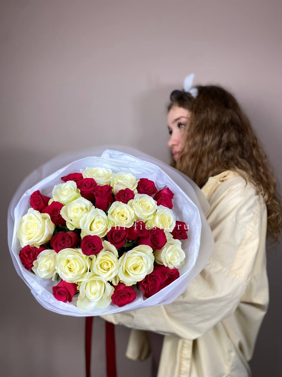 Для заказа товара "Букет из красных белых 35 роз" с доставкой в Новочеркасске нажмите в корзину