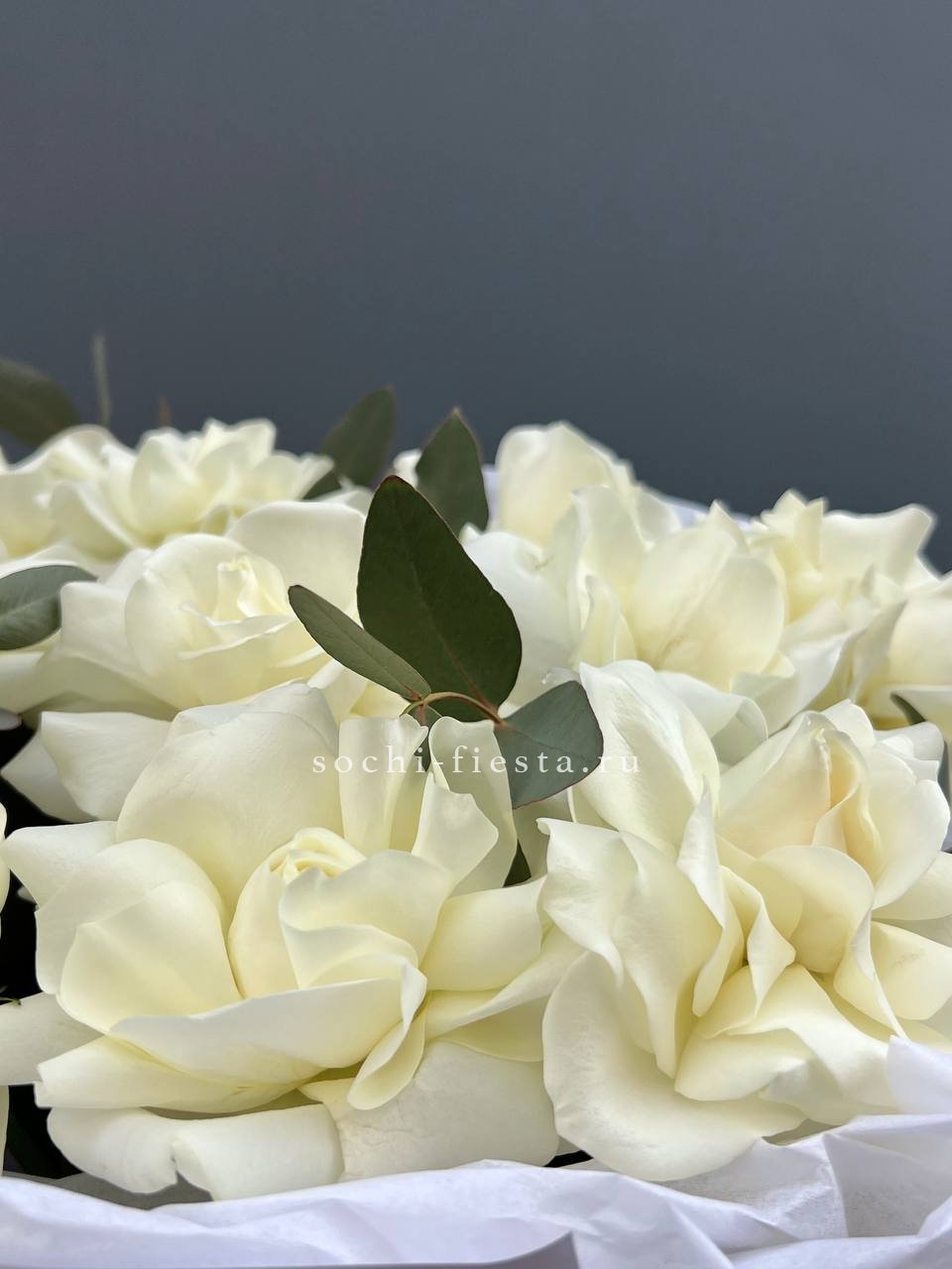 Тридцать пять роз в красно-белой гамме складываются в гармоничную форму с живым ритмом. Бутоны разной степени раскрытия добавляют визуальной глубины всей композиции.