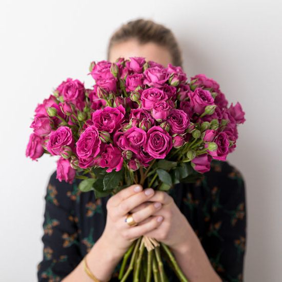 13 кустовых роз Bombastic, лента, дизайнерская упаковка.