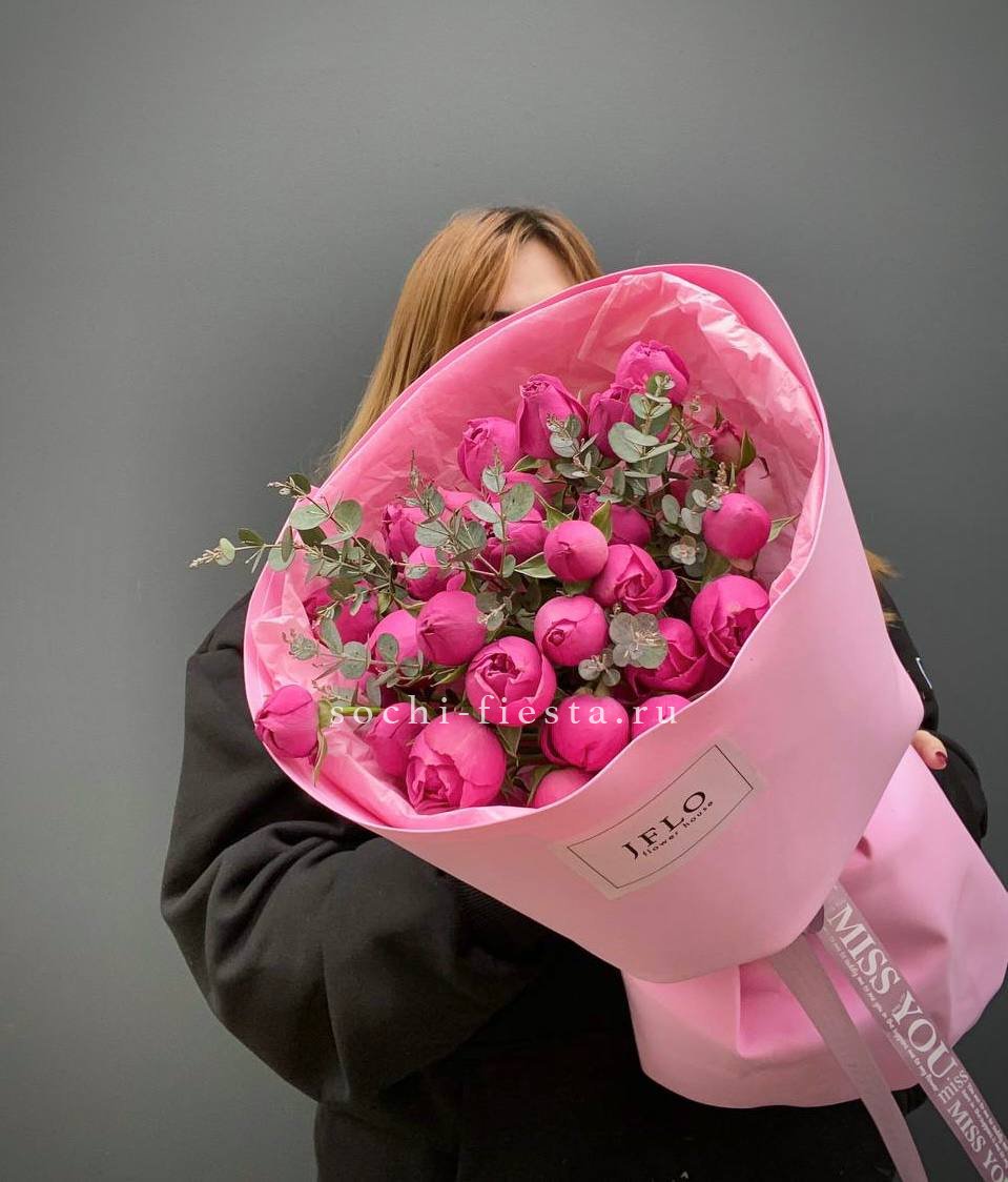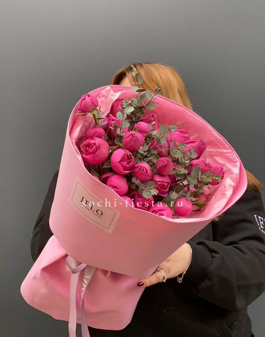 13 кустовых роз Bombastic, лента, дизайнерская упаковка.