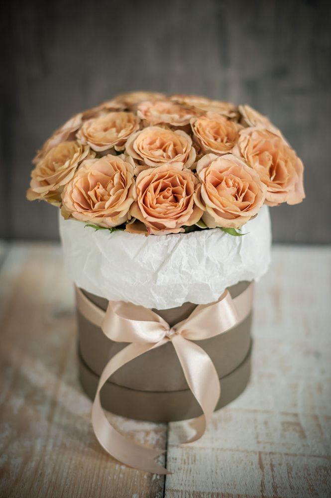 Мисти Баблс раскрывается пышными головками с множеством лепестков нежного персикового оттенка. Пионовидная форма добавляет глубину и объем каждому бутону в авторской сборке.