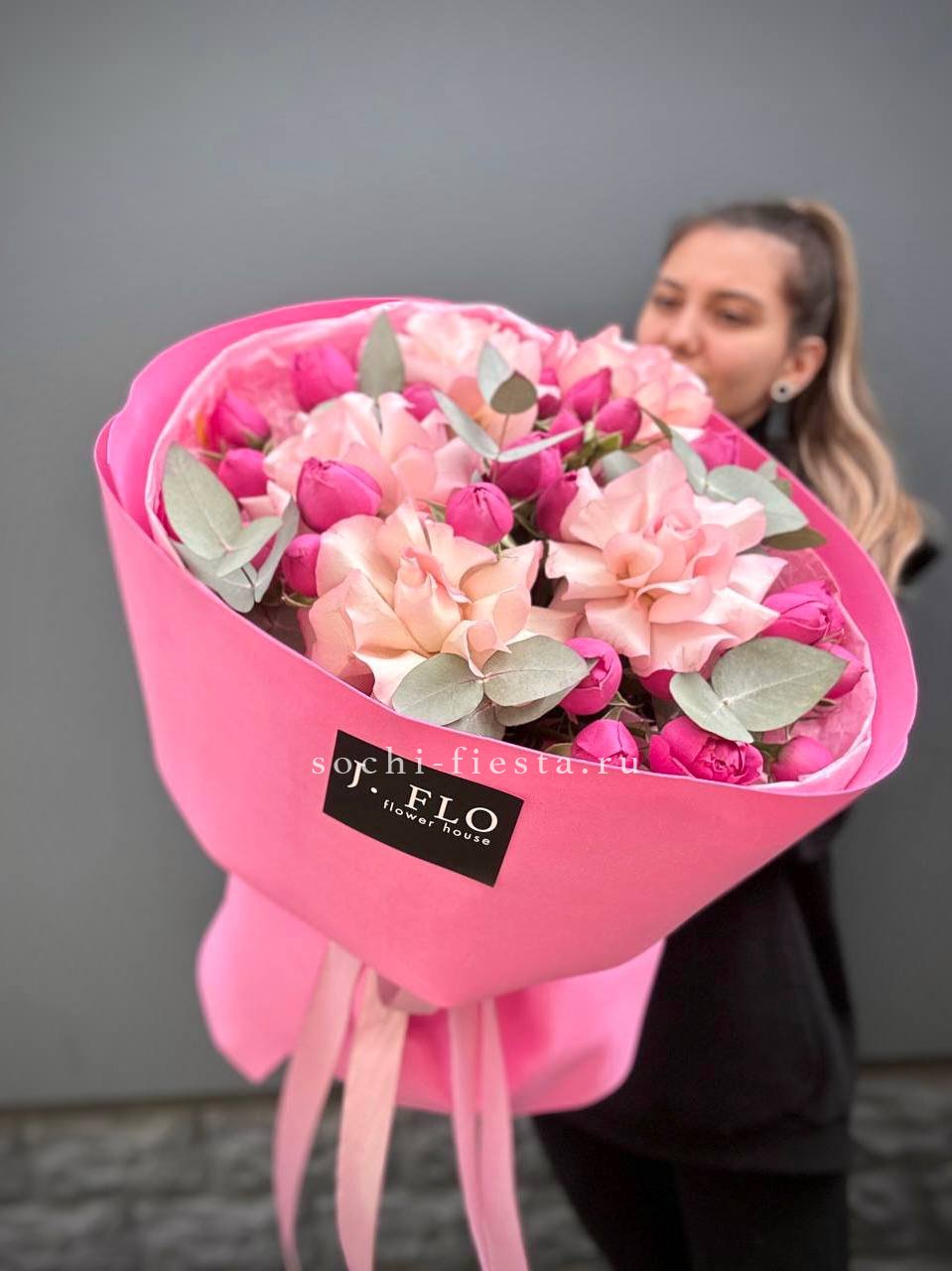 Для заказа товара "Букет французских и пионовидных роз "Ламиносо"" с доставкой в Новочеркасске нажмите в корзину